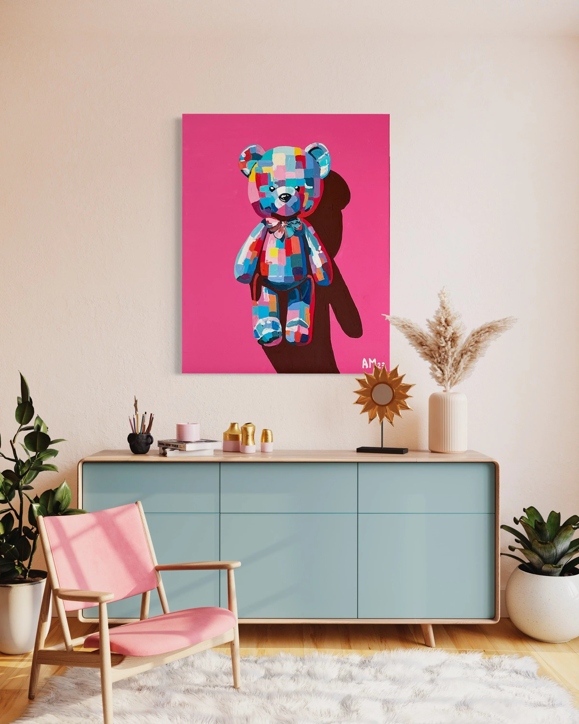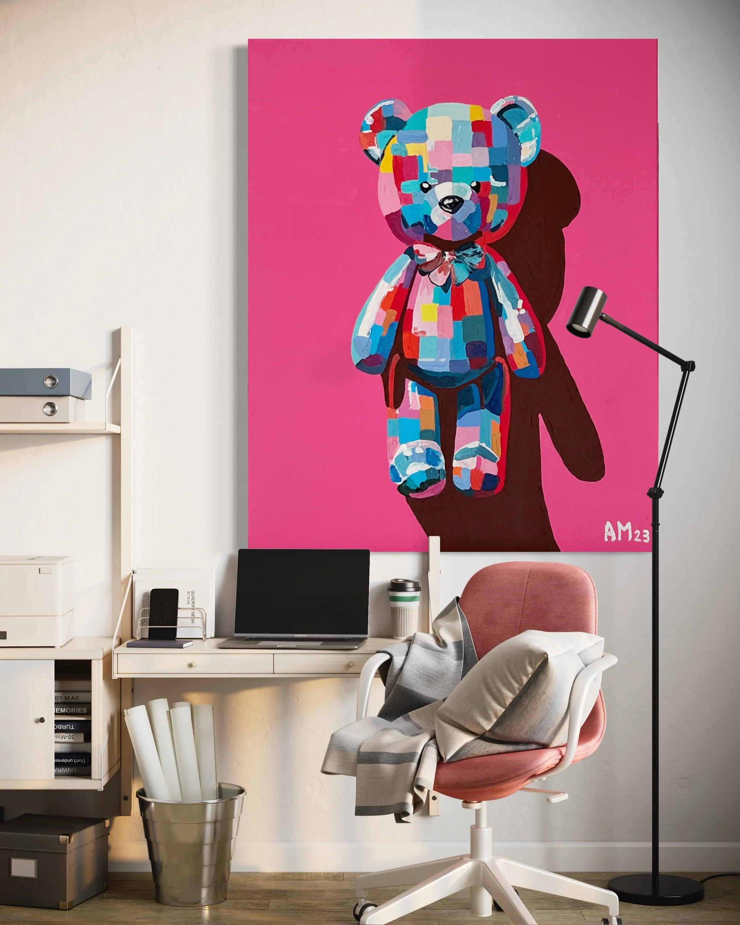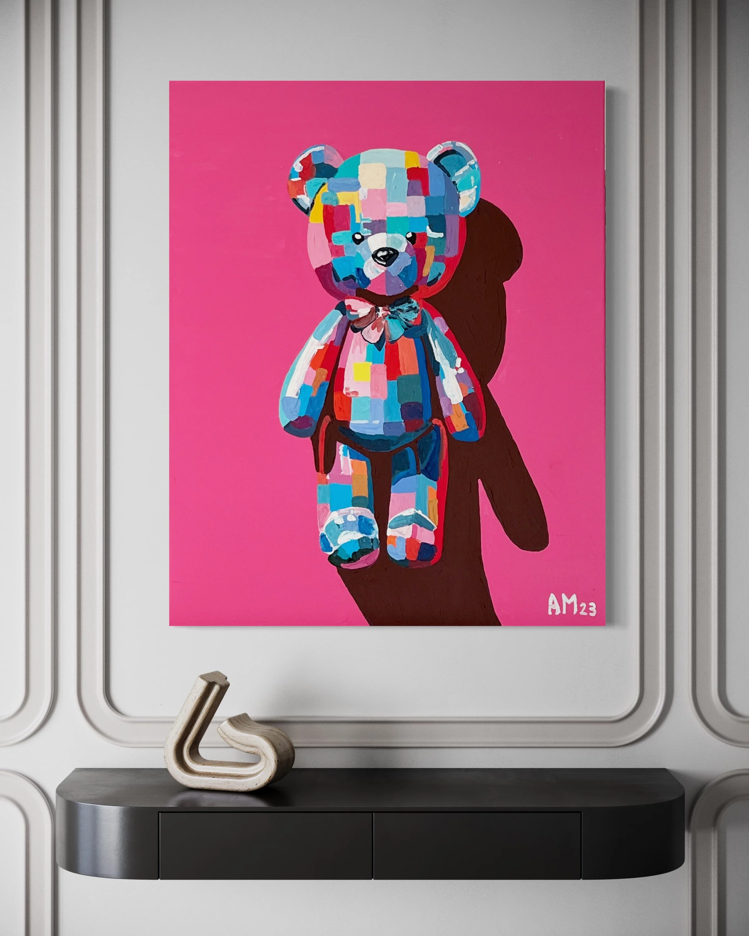 Teddy’s BubblegumThis is an original handcrafted art piece from the ‘TOYS’ collection.202316’’x20’’Acrylic on canvas SOLD